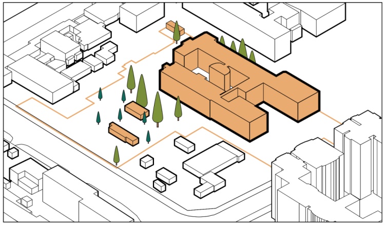 保留通过抗震加固鉴定的教学楼主体部分及十颗大型乔木。