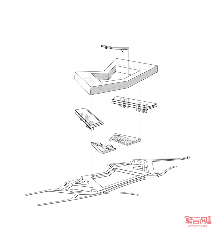 “绿环”:在邓小平的“一国两制”制度的影响下,深圳已经从一个小渔村发展成为一个两千万的大都市。深圳与香港两座城市在经济,政治和文化的交换正在经历“大跃进”式的发展。在这个背景下,新的通关口岸大楼应不只是一个交通转换,而也应该是一个两座城市交流的符号。因此,我们尝试超越其作为交通建筑的功能,创造一个两座城市之间的公共空间。这座建筑模糊了两座城市之间的政治边界,使城市之间的差异逐渐融合。