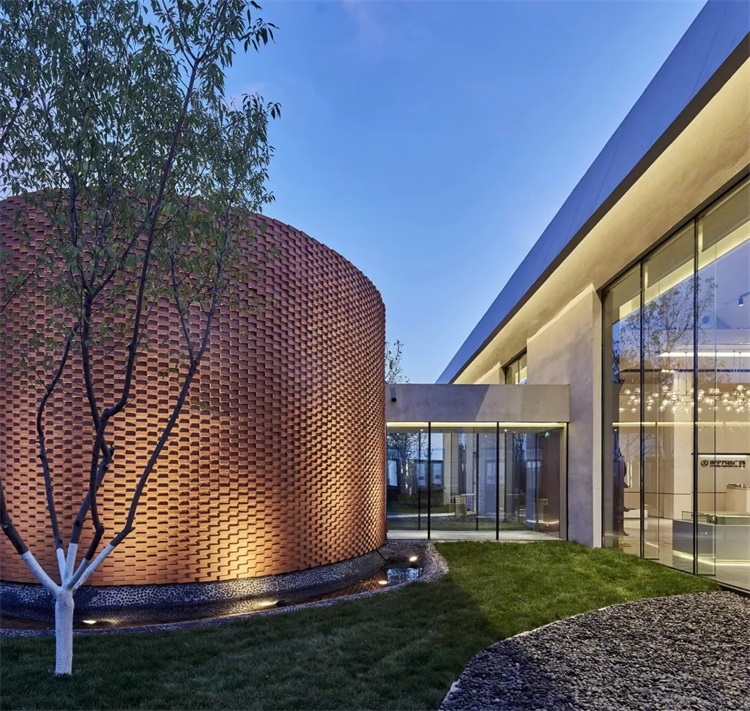 圆形的门洞被设置在南立面中心偏右,类似北方四合院的“照壁”位置,通过一条斜向的小径与外部环境产生连接。