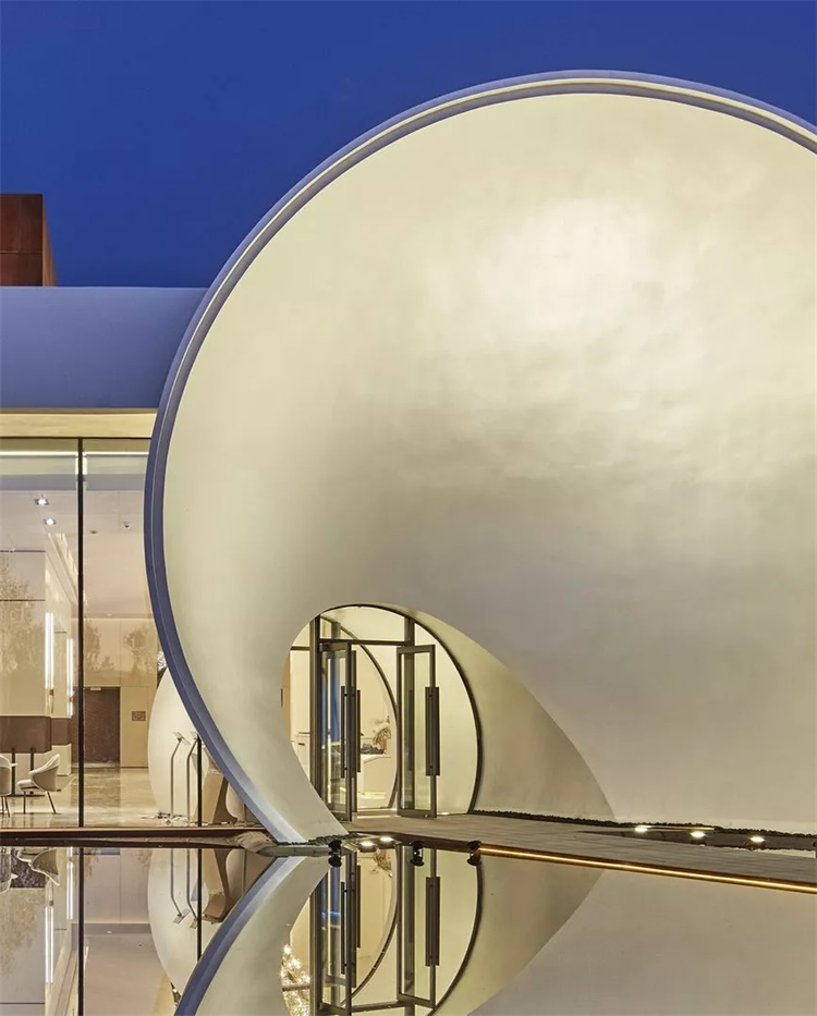 除了不可回避的商业展陈用途,这座建筑的文化氛围被调试得略显收敛,恰如南方温热空气在北方的凝固。对乌兰察布项目体验中心而言,设计背后的另一个意图,也许来自对18世纪末从古典建筑到现代主义萌芽时期的西方建筑精神的一次致敬。