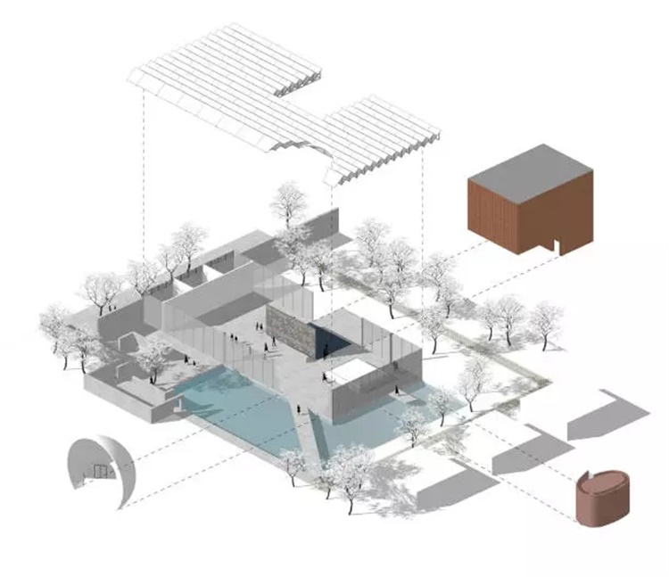 建筑的平面形制非常简洁,一个矩形的单层方盒子承担了几乎全部的功能要素,包括到访接待、参观展示、阅读商谈,以及必要的卫生空间、财务空间和会议室。