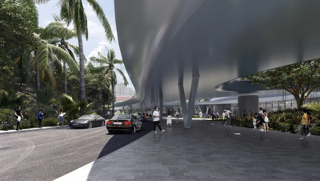 MAD的方案结合海南的城市特征、场地环境条件和科技馆的愿景,整体创造了“原始雨林与未来科技相遇”的情境。主展馆形如祥云,与天地自然对话;从主展馆延伸的连廊为市民提供了新型城市公共空间;丰富多样的热带雨林营造整体景观。