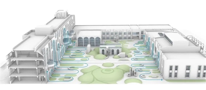 利用现有的工业基础设施,现场的许多残存工业废弃材料被用于宽敞的室外庭院空间,通过回收和再利用创造了户外装置及聚集场所。此外,建筑的改造具备后疫情时代的办公建筑需求,将每个办公单元的内部定向到一个单独的私人入口空间。在保持社交距离的时代,宽敞的庭院及凸出建筑表面的平台为集体聚会提供了共享空间,消除了任何内部聚集的空间,减少了不同办公室之间病毒传染的可能性。特别注意确保的一点,虽然办公室内部会形成小型内部组团,但暖通空调系统独立入户,仅限于这些空间,防止办公室之间的相互空气流通。