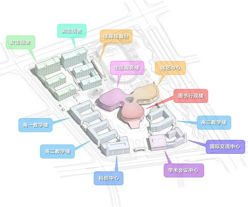 3. 通过合理功能布局和流线组织达到高质量的高中教育的使用需求。
