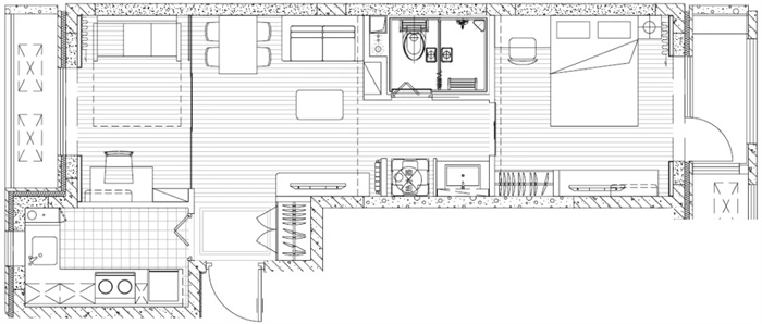 由于公共租赁住房的套型建筑面积较小,基本功能空间欠缺,适应性与居住者的需求相脱节的问题较突出。而传统的设计方法对于部品设备、管线的标准化、集成化考虑较少,无法实现居住品质的优良化。本项目整体解决方案引进并落地国际SI(skeleton and infill)支撑体与填充体分离体系,增强主体结构的耐久性,尽可能取消室内承重墙体,为填充体及套内空间的灵活、可变创造条件,以适应建筑全寿命周期内各阶段所需。主体结构、内装部品和设备管线三者完全分离,通过前期设计阶段对结整体建筑体系的综合考虑,有效提高后期施工效率,合理控制建设成本,保证施工质量与内装模数的对接,并方便今后检修、更新及增加新设备。作为公共租赁住房,为后期便捷更换装修部品,甚至政策性住房之间的调整提供了便利和可能,也为租赁者创造了灵活可变、适应性强的居住空间。