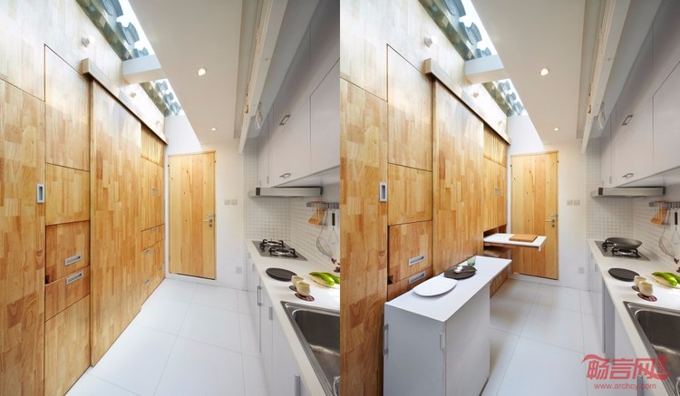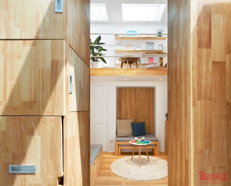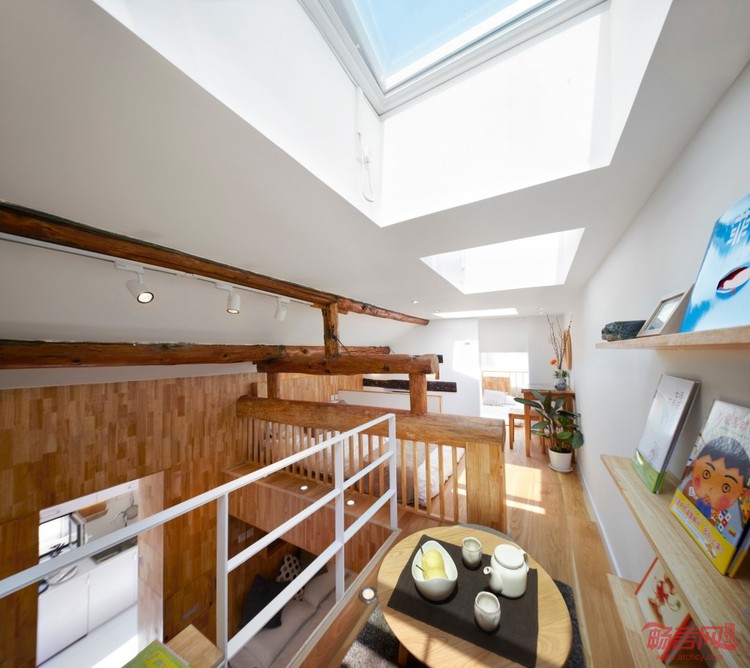 南锣鼓巷大杂院住宅改造项目在细节设计上,利用天窗解决室内因开窗面积小采光不足的问题,同时也不占用墙面的收纳空间。