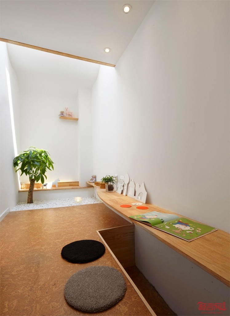 在小孩子的房间设计一个室内庭院,树与石头的布置,让整个室内空间看起来有一种户外的感觉。