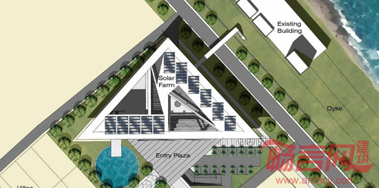 除以上被动式节能之外,我们还适当应用了一些主动式的环保技术,如三角形屋顶结合太阳能集热板;利用主导风向的风力涡轮发电机;高效节能的外窗与通风系统;节约一体化的管线夹层楼板体系等。