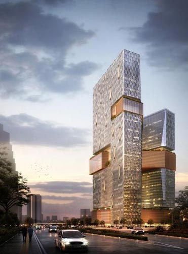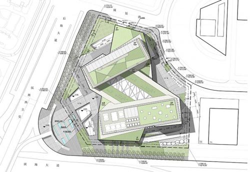 腾讯新总部大楼有两个塔楼,高从192~250米,三个桥连接两个塔楼。每座桥将被设计独特的主题。例如,最高的桥,高约180米,将围绕“知识” 主体,设有图书馆、会议室和支持学习的其他设施。第二高的桥,将围绕的主题是“健康”,提供篮球场、游泳池等健身项目。第三桥将作为建筑物基座的一个扩展。