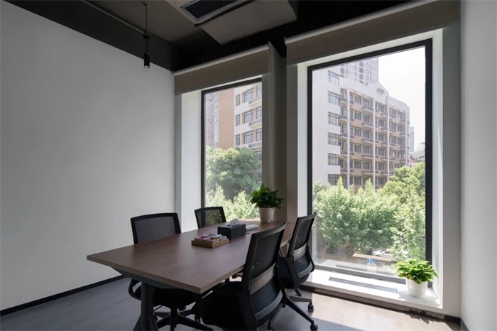 建筑内部改造,则从功能实用性出发,重新打开了原始建筑设计的屋顶天窗,自然光线透过天窗均匀的洒进来,似薄雾又似水幕划分了空间,既为空间增添了活力,又为萦绕中庭的开放式交谈区和四周的办公空间区域提供了良好的采光。