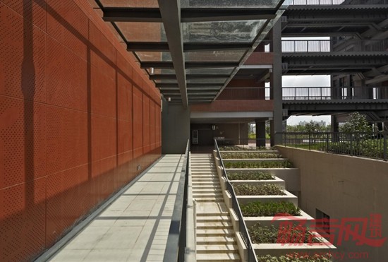 建筑寻求的是突破固有的平面化的条块分割模式,以全方位立体化的空间体系、交通体系、景观体系架构起校园网络体系的新形式,实现建筑与环境的粘合度与流动性的平衡。