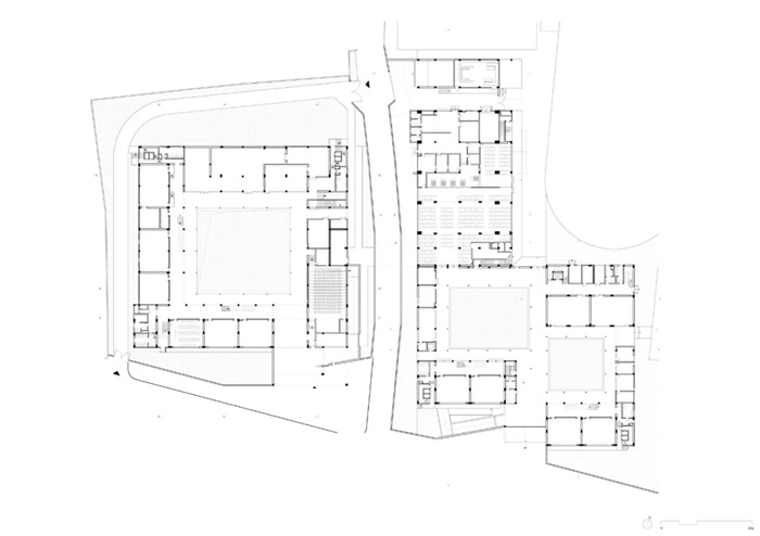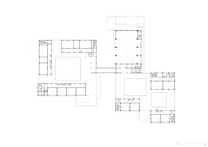 初中部和高中部的课程与教学行为特点,也一并体现在空间的布局上。校园建筑采用廊院式布局,在喧闹拥挤的狭小地块内创造了几处安静的内庭院空间,也为学生们的相互交流提供了良好的场所,在上海多雨的天气里,廊院的使用非常方便。