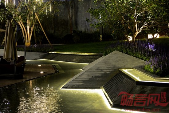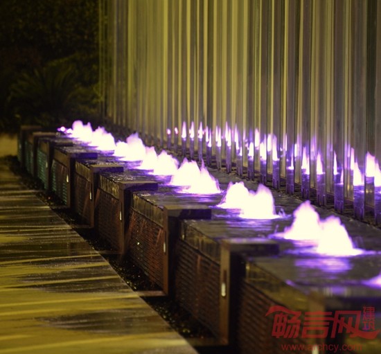 围绕底座的带状水景和点式喷泉为建筑立面增添了几分灵动。