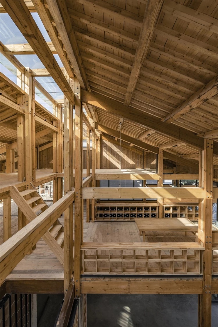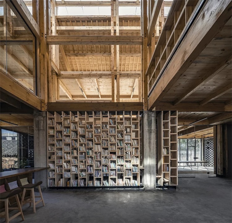 现场勘察后,设计师得出结论,已有的混凝土地基足以容纳社区中心的新结构,因而选择在现有的基础上架设预制木结构。这个举措大大缩短工期,并使建筑融进了武当山环境。