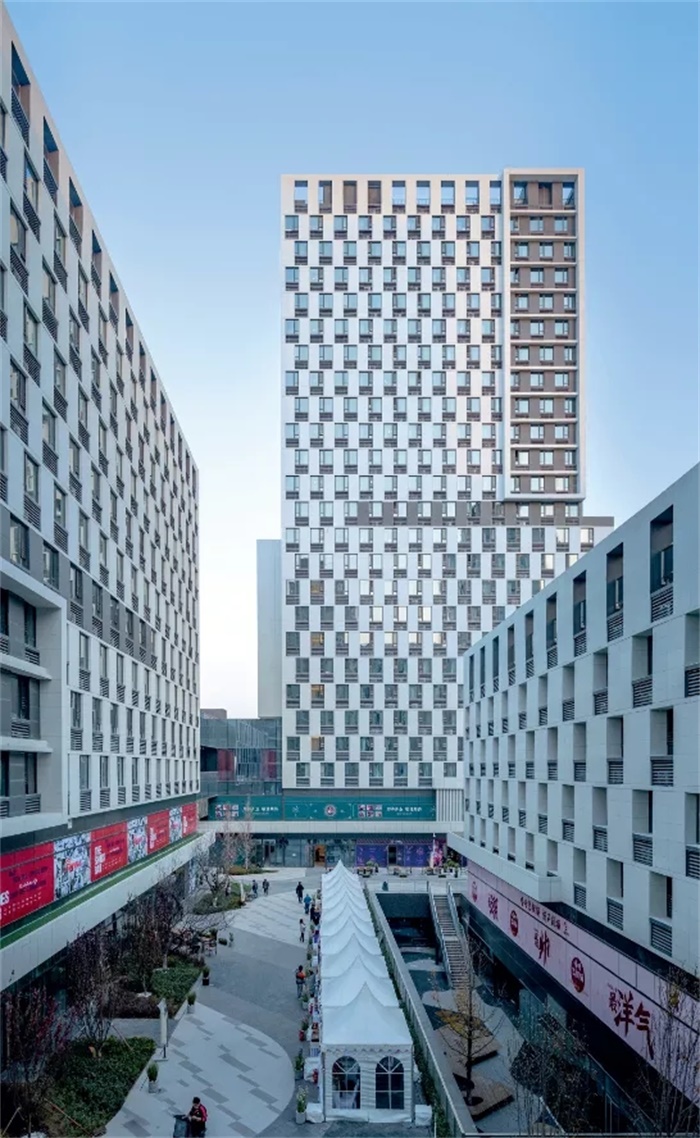 “城市青年家”是项目运营方万科泊寓的品牌口号。针对这个项目,从建筑师的视角看可以拆分成三个方面——城市(区位空间关系)、青年(服务人群)、家(建筑功能及体验),也就形成了从设计之初到项目落成一直关注和贯彻的三条主线:①服务人群——项目客群是如何定位的,针对其有什么特殊的空间使用需求?②城市性——应当以何种空间形态嵌入城市节点之中?这里既包括物理形态,亦包含所形成的公共场所空间。③居住性——基于使用人群及所处的城市区域,应当营造什么样的居住空间?它与传统的居住社区有何不同?