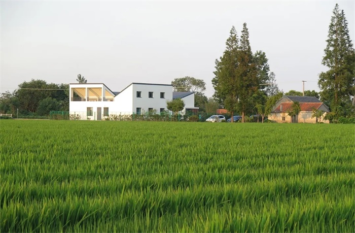 朝向道路一侧设置为相对公共的客厅、餐厅和厨房,而私密的各间卧室则靠近农田布置。在紧凑的平面布局中,将景观及朝向最佳的西南角给与最常居住的父母主卧,并为5户子女预留了卧室。