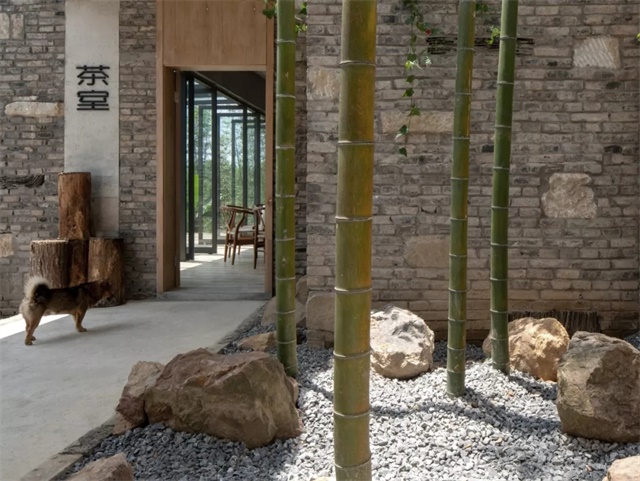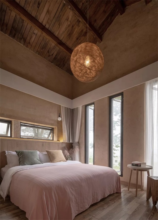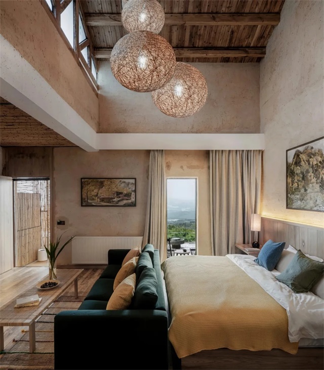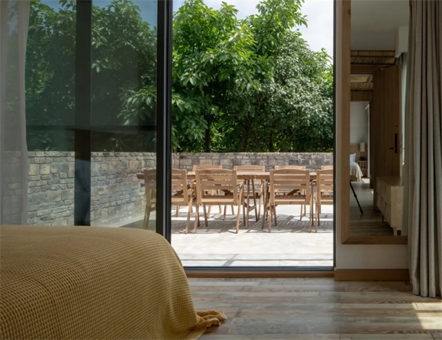 界外的建築改造過程中也是就地取材,維持著他最原始的狀態,室內卻有著現代的舒適與細膩感。旁邊的石頭房,保留著一磚一瓦的歲月感。房間斑駁的牆壁,獨具一格的機理,只用乳膠漆清掃而保留。