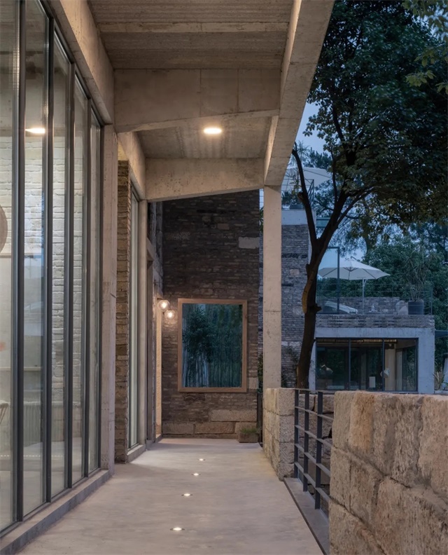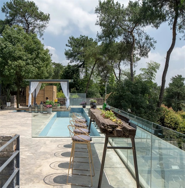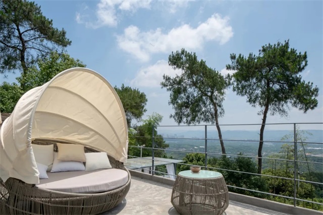 在重慶大學城虎峰山,有一間新開的美術館民宿,推開半掩的小竹門,沿著石板路,映入眼簾的是一座建在山間的別致的院落,樸實而不失質感,平添幾許生機。站在二樓的露臺望出去,能看到漫山綠色及都市景觀。界外的名稱來自民宿主人夫妻倆姓名的諧音,也好比這個地方是四季與山界之外。而民宿主人對於整個民宿的打造,也確實保留了這樣一種自然與野趣的界外之感。