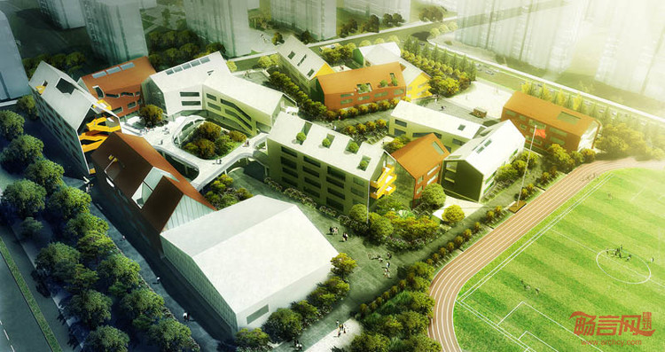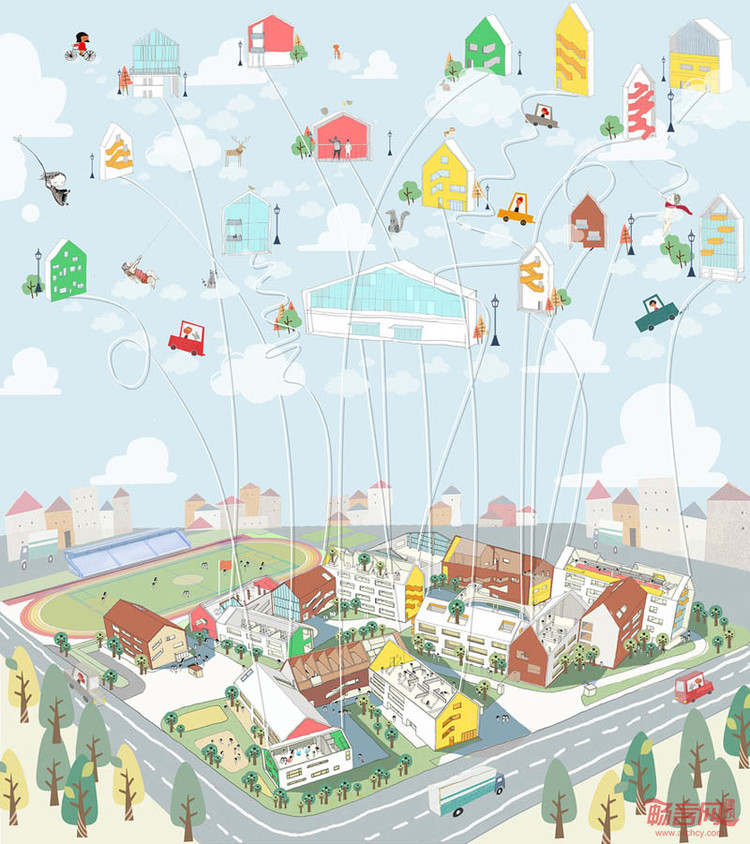 在现在的城市中,经常可以看到年纪小小却压力重重的孩子,传统的校园让学生们早早地进入了以成年人为模板的空间环境中。一所城市里的学校应该长什么样?面临教育类建筑,设计师应该思考的是如何通过设计来打破传统校园的设计概念,给予孩子们这个年纪应有的快乐空间。