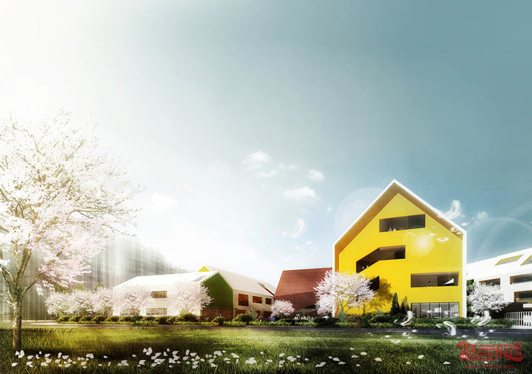 整个校园及建筑以人的体量与场地、孩子们的成长和情感结合在一起。“小城故事”式的规划将让孩子们在童话般的小镇中穿梭徜徉。