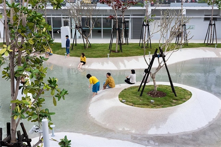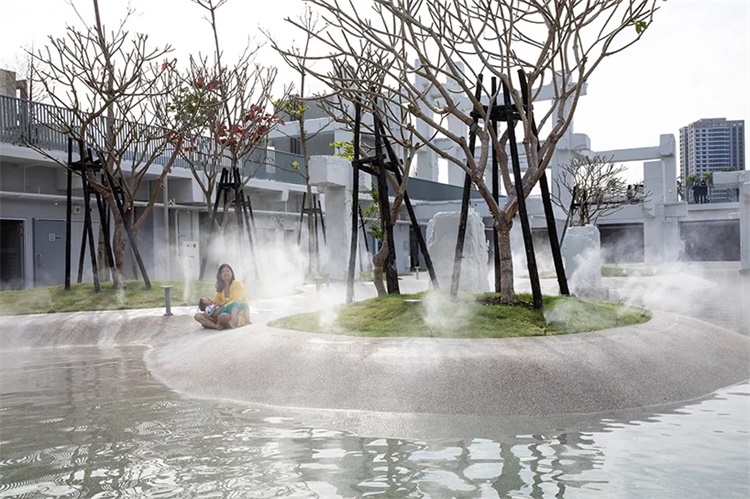 原先的购物中心进行了拆除回收,地下停车场变成了下沉公共广场。游泳池里的水随着雨季和旱季而涨落,在炎热的天气里,喷雾器为游客提供了放松氛围。广场还包括一系列聚集空间和表演舞台。同时,拆除了混凝土框架,保留了可以改造成商店、售货亭和其他设施的装饰性结构。