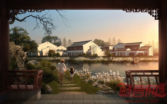 整体规划模仿自然生长的传统村落错落有致的建筑形态布置相对严整布局基础上的错动与扭转街坊、巷道、院落组合的肌理。结合现代生活功能特点,及天然景观优势,描绘了一幅具有现代机能的山水田园生活格局。规划策略遵从中国传统村落形式,汲取精华,将现代功能结合古镇特点,设计出具有中国传统文化意境同时兼顾现代使用功能的产品。同时,尊崇地理环境,整理分析现有地形条件,从中挖掘具有价值的景观元素,并对其进行改造与强化,形成山、水、岛。