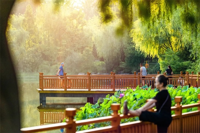 基于自然的解决方案,提高水域的流动性,恢复水底的生态基地,实现蓝绿空间的自然过渡和无界交融,让自然、活力、生态的氛围渗透入公园内的各个角落。