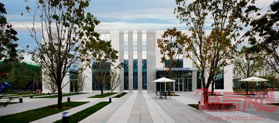 本项目的主要挑战是,在满足低造价+快速建造的前提下,将入口区做出良好的品质感,以提升整个园区的产品定位标准和可展示性,带动产品招商活动的展开。对此,我们的解决办法是从三项原则入手展开设计:原则一 强调模数化的设计控制方法,从平面柱网系统到立面幕墙系统再到景观系统,提出了一套完整的模数控制原则,以提高空间和材料的使用效率,协助建立起模数化的建造系统。原则二 建筑、景观一体化设计,从概念定位开始推进建筑与景观一体化的系统构成,以强调环境的综合体验效果,提升建筑与景观系统的整体品质感。原则三 采用低技高效的材料和构造技术,从建筑到景观系统均采用当地生产的易于采购的材料和部品,并且强调构造语言的简单通俗,以有效缩短工期降低造价,并提高可维护性。通过综合运用这些原则,很好地满足了项目需求,提高了设计的逻辑性和完成度。