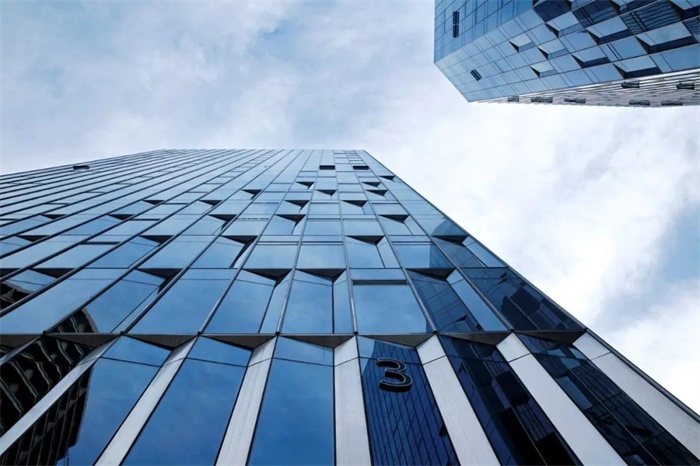 塔楼外立面设计灵感来自于波光粼粼的运河水,采用折叠的玻璃幕墙单元来体现光影变化,从下而上渐变的折叠单元,展现了运河水面波光粼粼的光辉。