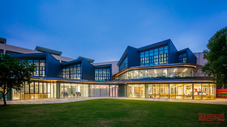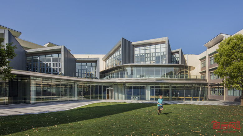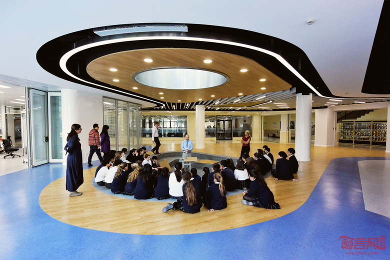 “Transparency““透明性” 一直是设计中核心的理念。设计师一直强调未来在玛格丽特汉密尔顿中心创造出的作品以及其过程都是一笔宝贵的学习财富。通过激发学生的好奇心以及观察感,最大程度的培养孩子的创新能力。“Knowledge Well” “知识中心“的概念是设计中一块下沉式一体成型的剧场。中心这个概念不但因为其位于整个项目的中心区域,同时也承担公共空间与学习空间相结合的非正式学习空间中心。再配合屋面的自然采光天窗以及落地幕墙使得该区域成为学生最向往聚集交流的中心场所之一。玛格丽特汉密尔顿中心的二楼新增的录影棚、阶梯小剧场等功能使学生真正的能将学习中的多媒体制作、测试、展示三阶段完美的得以实现,并且再由该区域通透的玻璃展示给每一个经过该区域的别年级学生以及家长。