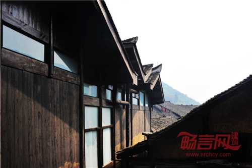 4)屋顶特质:作为建筑中部的飞顶,V型屋顶的起翘处形成了采光的高侧窗,低凹处则是镀锌铁皮的排水沟。因为遵循着周边老房子类似的坡度、色彩、材料与建造方式,它与环境的关系是和气的,但是屋脊塌陷、屋檐高扬而与传统建筑屋顶几乎相反的空间结逻辑则揭示了建筑师一定要对历史发言的专业立场——即使从外观上,修建于当代的建筑也不该与老房子完全混淆,与历史的差异源于对历史的尊重。