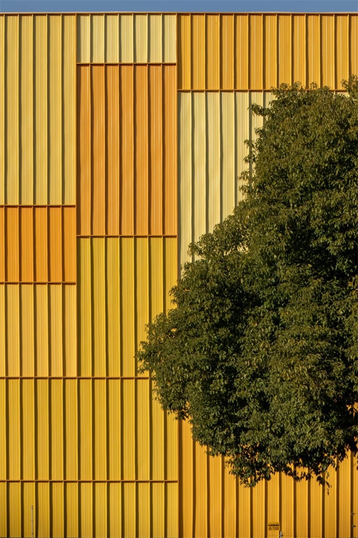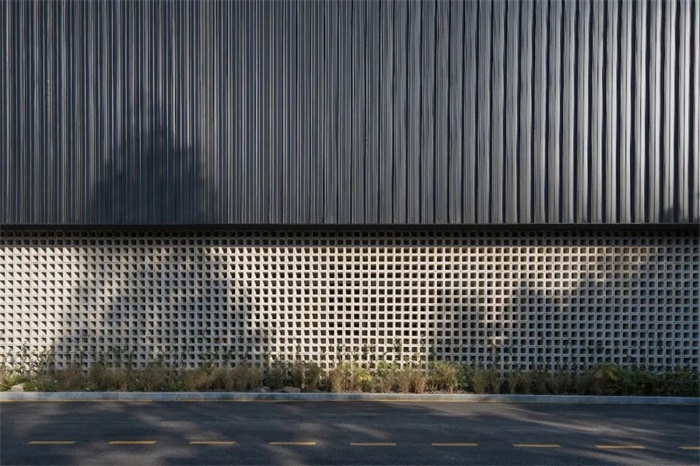 厂区总建筑面积约1.7万㎡,原本的四幢建筑因功能划分为了展厅、办公室和仓库。改造过程中,Say Architects 保留了原建筑的主体结构,将重心放在了新立面系统的构建,在原有尺度上进行的材质的覆盖也暗示着建筑在时间维度上的延续。