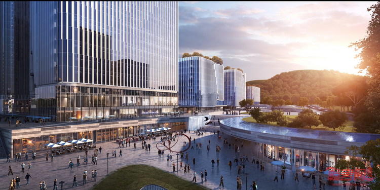 济南,亦被称为“泉城”,拥有丰富的自然资源和秀丽风光。由Aedas设计的鲁商综合体项目位于著名的千佛山脚下,定位为多元化的“生活-工作”枢纽。以山势泉形为设计理念,该项目集合了两座高层办公塔楼、三座低层总部建筑、商业零售空间、服务式公寓和酒店,并在其间设置了一系列景观空间和绿植露台。