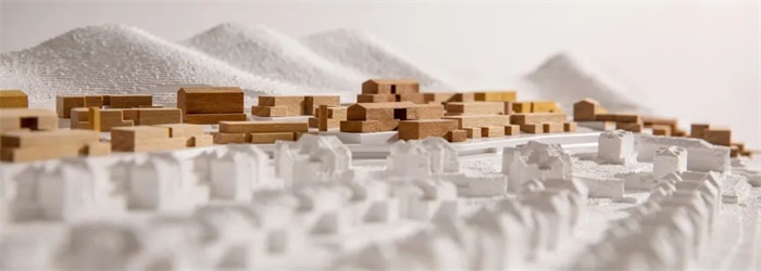 不同于城市片段中空间集约、人员密集的办公、商业环境,在自然资源如此丰厚的基地内,我们想创造一种接近于度假体验的商业与办公氛围,让项目所在的山水自然环境与人为雕琢的建筑空间充分渗透,满足使用者对所谓山地小镇的期待。为此我们利用一条蜿蜒起伏的“山线”将场地内部划分为四个不同的聚落,同时由一条平缓的“村线”将四个聚落串联起来。根据各聚落和城市的关系以及自身的功能定位,四个聚落形成了“一市三村”的规划结构。