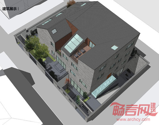 景观方面通过两个下沉庭院,把展览和居住两个功能流线巧妙的分开。