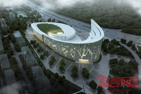 项目位于呼和浩特南二环畔,整个建筑的形体是由博物馆、实物资料档案馆和“资料研究中心”组成,并通过西侧“资料研究中心”的竖直轴线和东侧“绿地公园”的水平轴线螺旋上升,向中央的博物馆聚拢,消失于博物馆中央大厅顶部,使三者有机的融合在一起,形成关系明确的建筑形态,逐渐高起的“资料研究中心”则成为整个场地的视觉中心。