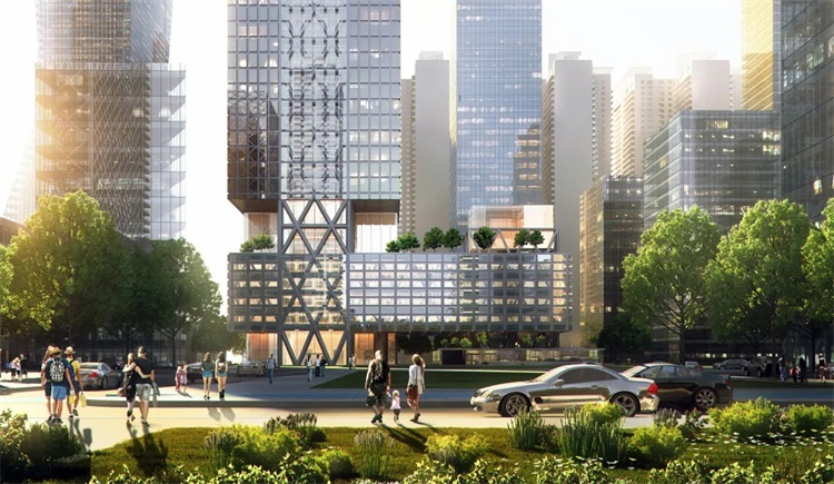 这两个大胆而直接的体量设定将公众可达的开放空间集中,并成倍地增加,这是 SOM 在设计上对建筑使用者和周边公众在本质上的优先考量。