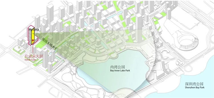 项目位于深圳湾景观通廊的轴线末端,建筑主体面向东侧,坐拥远眺深圳湾发极佳视野,建筑的区域优势明显。