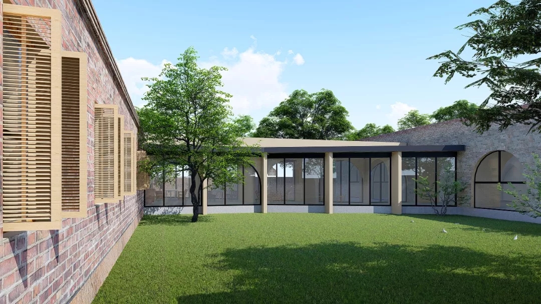 改造前后校舍院落对比照片与渲染效果图@闻鹤建筑事务所