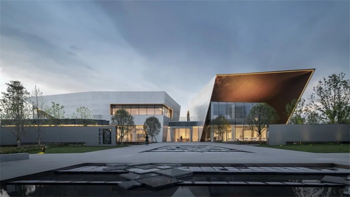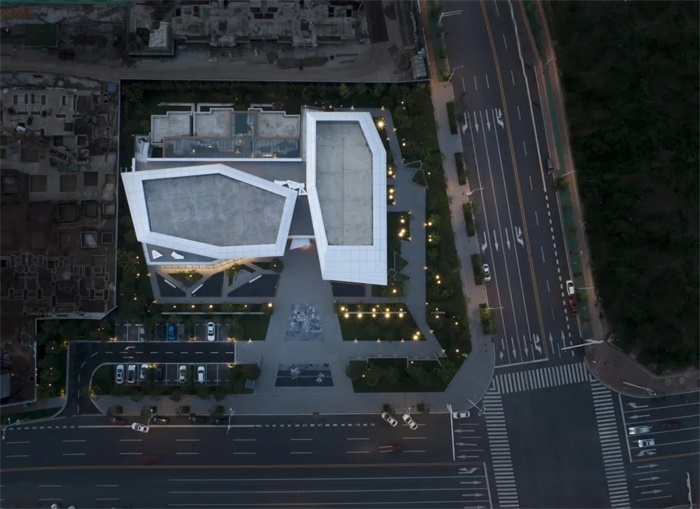 这座标志性的建筑位于湖南省株洲市天元区,南面可远眺万丰湖湿地公园。建筑形态呈现出两块几何变形的空间序列,并于内部空间和外部景观间建立一个精心编排的体验序列。