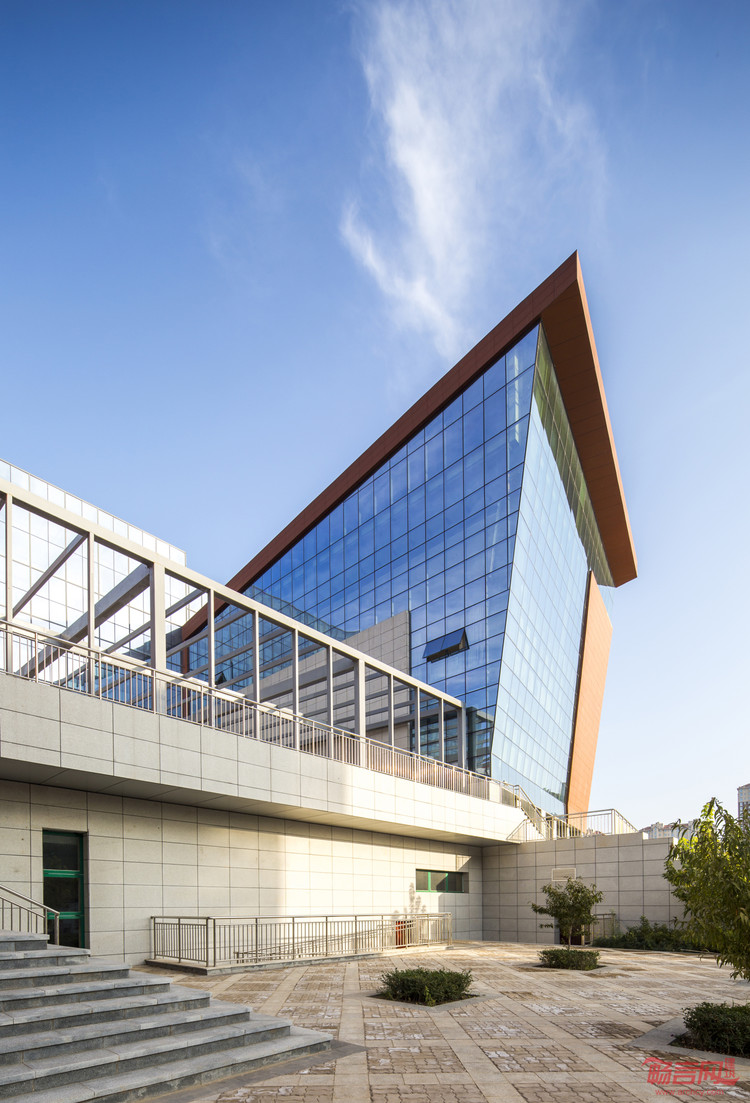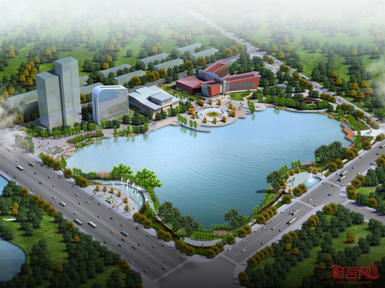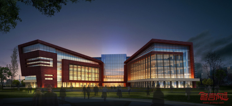 建筑根据场地特点,在南侧,北侧设置了两个广场,建筑内部与东侧儿童乐园之间进行对话,形成了庭院式的建筑布局模式。主入口的设置与露天活动广场结合,与华雁湖互相呼应,使建筑与景观融为一体,体现了规划布局的整体性与可持续发展性。
