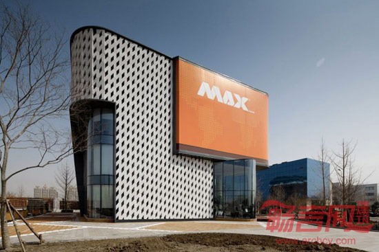 我们项目的业主正在企业集团化过程中。MAX展示中心是在不同的城市对其产品进行展示和销售的中心。为了达到最好的可视性,展示中心将会被放置在规划用地十字路口的一角。使用者以经济和高效的建造为目的,将售楼处规定为一个可以被复制的单体,以相同的形式出现在不同的基地环境中。