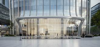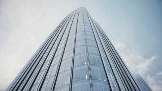 设计在拐角及塔顶处采用弧面玻璃,在实现合理进深的同时,打造出独特且圆润的塔楼轮廓。流线型的设计语言从顶部向下自然延伸,形成与立面一体的雨棚,在一气呵成中营造出大气的入口形象。