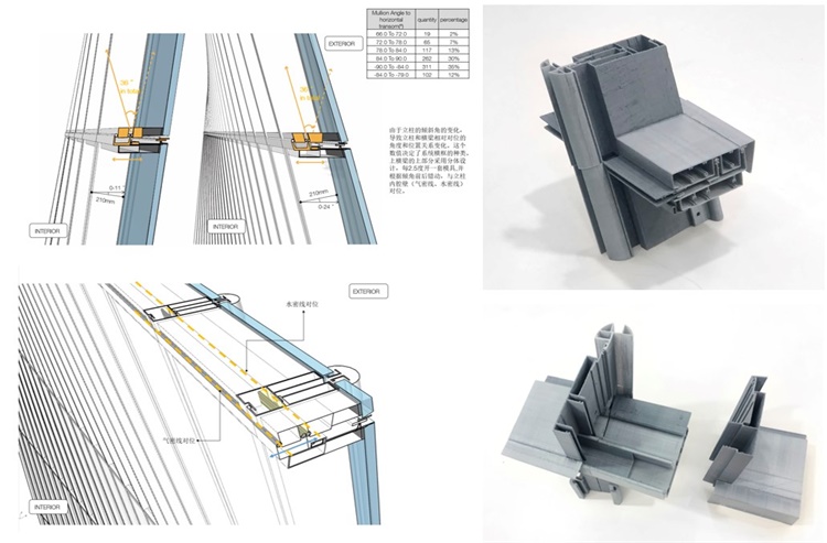独创的幕墙系统能适应单元板块多角度、多尺寸变化的要求,确保建成效果与模拟效果高度一致,并保证幕墙性能。而采用三维组框+平板玻璃冷弯设计的玻璃单元,以打破国内最大单元玻璃翘曲量的86mm让设计得以实现。整个过程真正做到了从整体几何优化分析、幕墙模型建模、LOD400加工图深度构建建模,到加工图数据自动生成和检查的全过程幕墙BIM流程。
