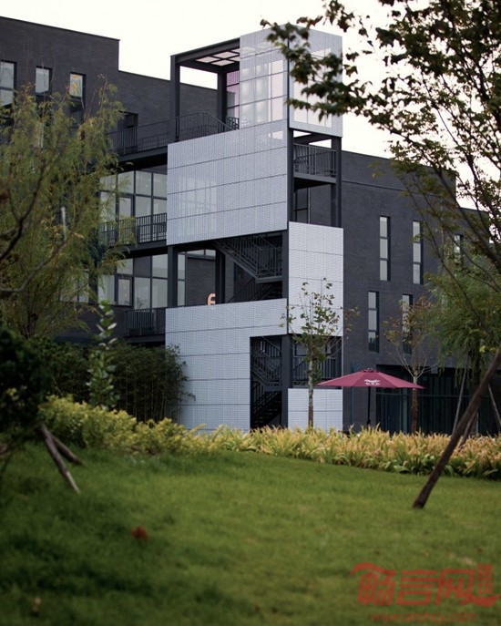 由于项目的总体规模提前进行了控制,在空间承载力方面不像很多办公工厂等项目的压力那么大,一期秉用地面停车的最大化提供办公的便利,停车位与景观是同步设计的,因此当这里正式投入使用以来,无论是行进中的还是停在树荫下的车都是生产景象的一部分,是一种现代美学,二期综合楼为主的办公区的地下设置了停车场,为地面设置了一个非正式交流的开放大堂。这个露天大堂即将成为新的生产力,促进空间。改变上班族各单位自我封闭的历史。