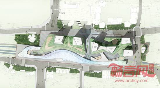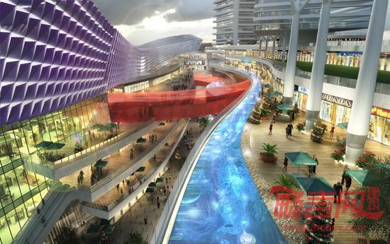 该项目设计面积50万平米,灵感源于重庆山城理念,超高层塔楼群像一组自然生长的山脉,层层叠叠形成丰富的天际线,商业裙房由一条流畅连续的表皮,连绵起伏形成立体的商业空间。商业一、二层结合高铁出发站房,以非目的性人群为主的中端零售,形成自由集散穿行的街区式商业。三层以上为商业Mall,以目的性人群为主的高端定向商业,通过天梯到达顶层天街,形成自上而下的商业流线。