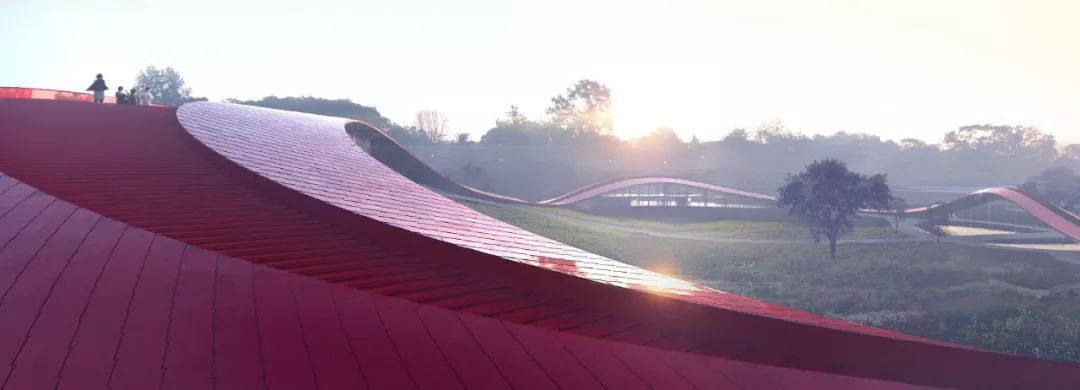 在中国成都,“智慧之环”的建设工作已经开始。智慧之环是一个椭圆形的建筑,顶部有一个鲜红色的可行走的屋顶。由powerhouse公司设计,可进入的屋顶蜿蜒穿过郁郁葱葱的公园,将人与自然连接起来。该项目是一个名为“unis chip city”的大型开发项目的一部分,并将容纳总体规划的展览和接待中心。该项目已经在建设中,预计将于2019年9月完工。