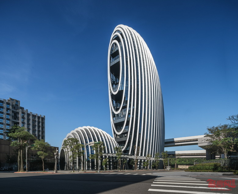 砳建筑融合在地地域文化,并以当代建筑形式呈现。设计灵感来源于附近基隆河畔的鹅卵石,独特的造型在传达圆润和优雅的美学理念的同时 ,兼具力量和个性。建筑的“卵”状外形作为生命的初始形态,隐喻地区的复兴,更是知识的孵化器。同时,卵石由河入海的生命历程,也象征着作为台北新生力量的南港科学园区的全新出发。