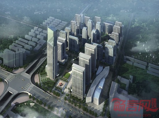 通过超高层塔楼加强区域形象,提升项目价值。整体空间布局与城市肌理相契合,中央商务公园与居住区的景观绿化共同构成了南北贯通的脉络轴线。