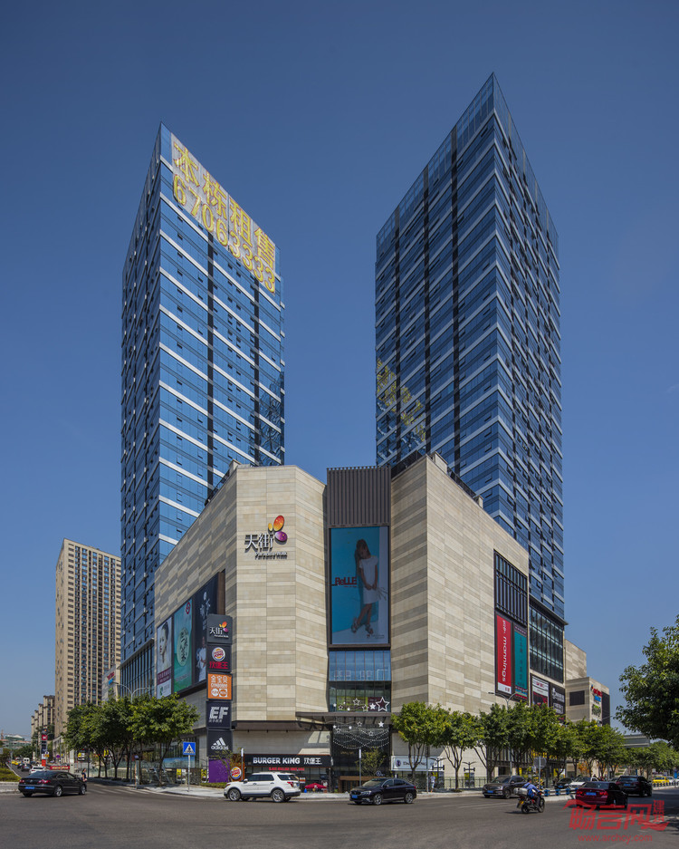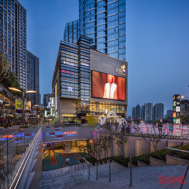 项目位于江北区石子山体育公园南侧,拥有两栋高层塔楼和一座五层商业裙楼,在冉家坝商业中心的核心地带提供办公、SOHO、商业零售和娱乐等业态。裙楼包含购物、餐饮、电影院、超市及其他休闲设施。其地下层直接通往地铁站,赋予该项目与城市其他地方的高度连接,并提升其商业价值。